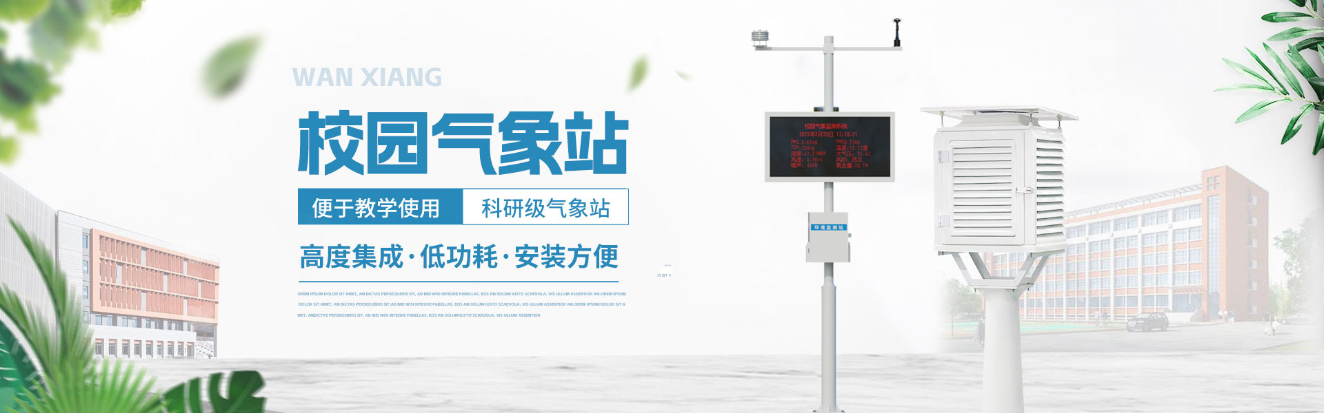 山東萬象環境科技有限公司官網主要產品有防爆氣象站,校園氣象站,農業氣象站,負氧離子監測站,超聲波氣象站,歡迎咨詢13276362033!